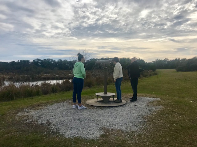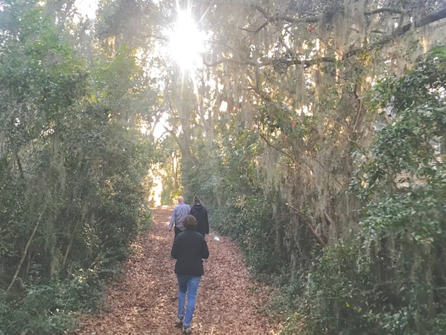 It wasn’t until Saturday that they got to actually take a look at where they were, and we took a tour of the favorite outdoor spots we’ve found so far. The Audubon Preserve was much quieter than the last time we were there, maybe it was the time of day or the cooler and overcast weather. The four of us were a little disappointed we didn’t get to see more wildlife but were still in good spirits as we made our way to Jarvis Creek Park. In an hour walking around the lake we spotted ibis, egret, heron, and counted seven alligators, mostly thanks to Steve’s gator-spotting skills. A trip across the bridge to Pinckney Island brought the alligator total to nine and added to the number of birds I can’t identify.
