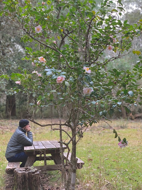 We took a walk through rice fields and woods and lost our way. A short walk became a long one as we had to retrace our steps again and again. This place had a way of trying to keep you inside it. Perhaps that’s what these woods were taught over time.