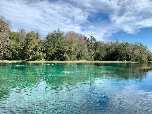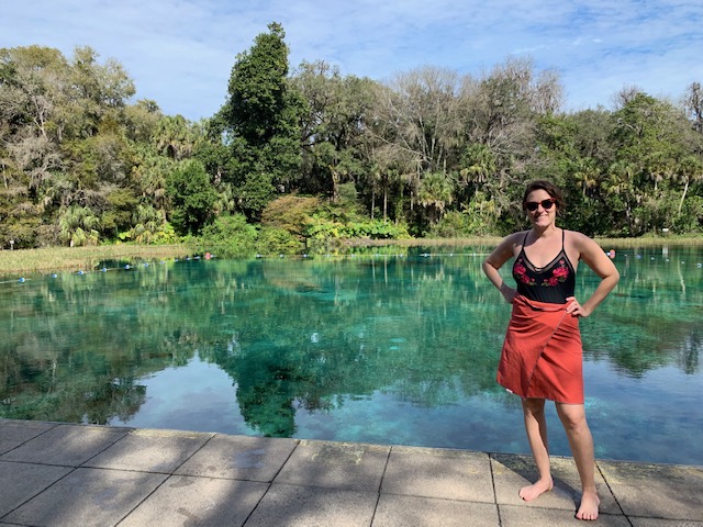We left Jacksonville with two large to-go cups of coffee (thanks, Jenn!) and headed for Rainbow Springs. I had seen pictures online and knew I wanted to take a dip in the natural waters. The entrance fee was $2 a person, so I thought, this is either going to be a great secret find or a terrible experience. To Rainbow Springs! We decided to go for a walk around the springs before taking the plunge. We found out the Rainbow Springs was actually an old tourist attraction built in 1937 from old phosphorous mines. Glass bottom boat rides were the main attraction. Not much is left of the actual park besides remains of cages from their “zoo,” and a few man-made waterfalls. The park was taken over by the state years after its closing and has been in preservation-mode ever since. We walked to the swimming area and I debated getting in.