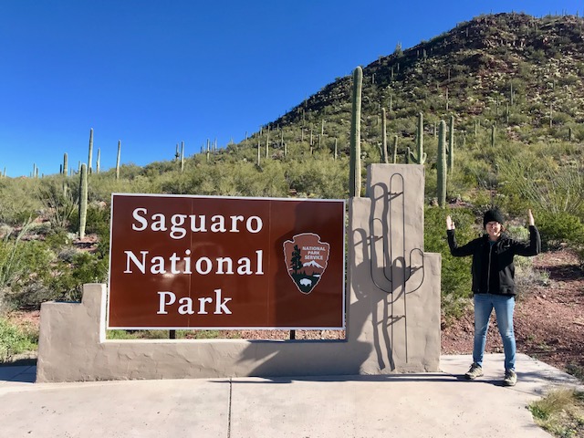 We packed up our snow covered tent and crossed into Arizona. After a night in Tucson, we hit Saguaro National Park. It’s pronounced suh-WAH-ro, which I’m still working on myself.