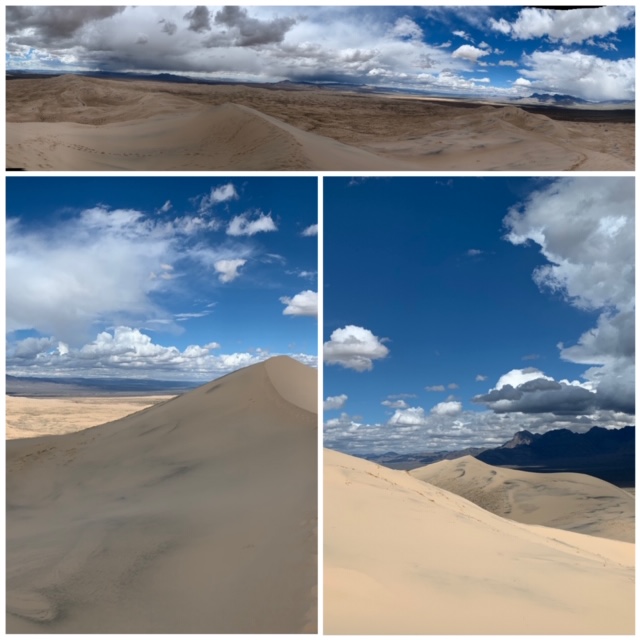 The dunes cover 45 square miles and rise 650 feet above the desert floor. We passed visitors with makeshift sleds and laughed at the absurdity of climbing a sand mountain in the middle of the Mojave deserts hours after wondering if this place had anything interesting to offer.