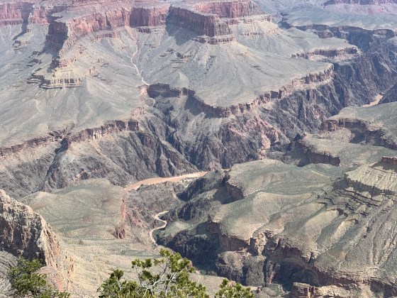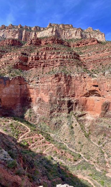 After our feet reached concrete, we realized we probably could have made it to the Indian Garden Campground (down that serpentine road below), but it’s better to end early with certainty in your abilities, especially if the “back” is much harder than the “out.”