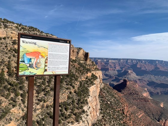 We decided to take on part of the Bright Angel Trail because you can’t really appreciate the grandness of the canyon from just the top. We were welcomed with this warning.