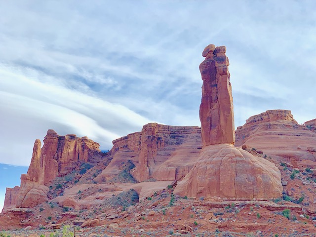 There’s a lot more to explore in Arches and around Moab. We stopped near this spire on a pedestal around sunset. We couldn’t find a name for it and Kate dubbed it “The Lovers.” Pretty good, in my humble opinion.